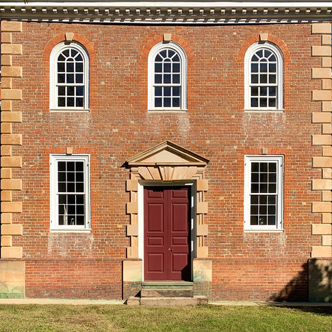 Aquia Creek was well known for many decades as an important quarry in early America. Sandstone cut from it was later used to build numerous public buildings like the US Capitol, the White House, and trimmed other churches like Pohick for ornamentation. The congregation at Aquia used this stone lavishly with eight quoined corners, keystones emphasizing the windows, the three rusticated "Gibbs surround" entrances, and throughout their cemetery for memorializing gravesites. This stone trim continues up past the hipped rooflines along a squat and square tower topped by a cross. The detail is exceptional and completely uncommon for the colonial era or even now.